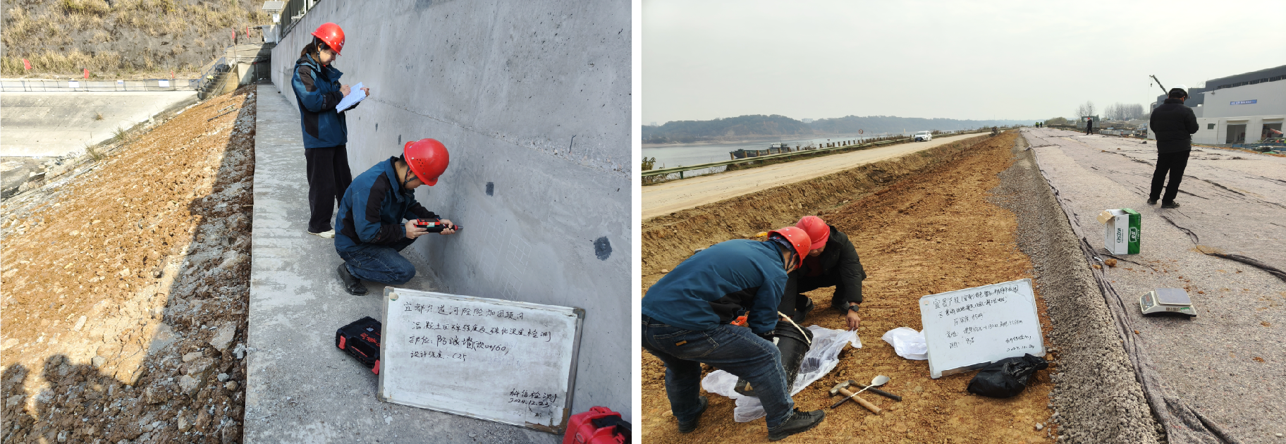 2024年12月23日~24日宜都市水利工程质量安全监督中心委托我公司开展了第二批宜都市2024年度水利工程质量飞检,检测项目包含混凝土强度、钢筋间距及保护层厚度、压实度、钢筋原材等。