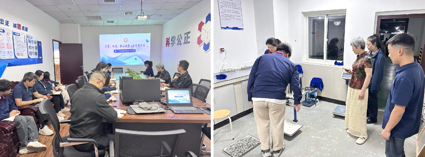 2025年4月8日,质量、环境和职业健康安全管理体系第二次监督审核首次会议顺利召开,审核组对审核范围、审核目的、审核依据、工作安排等进行详细说明,会后参观了公司各试验室,并进行相关参数实操展示。